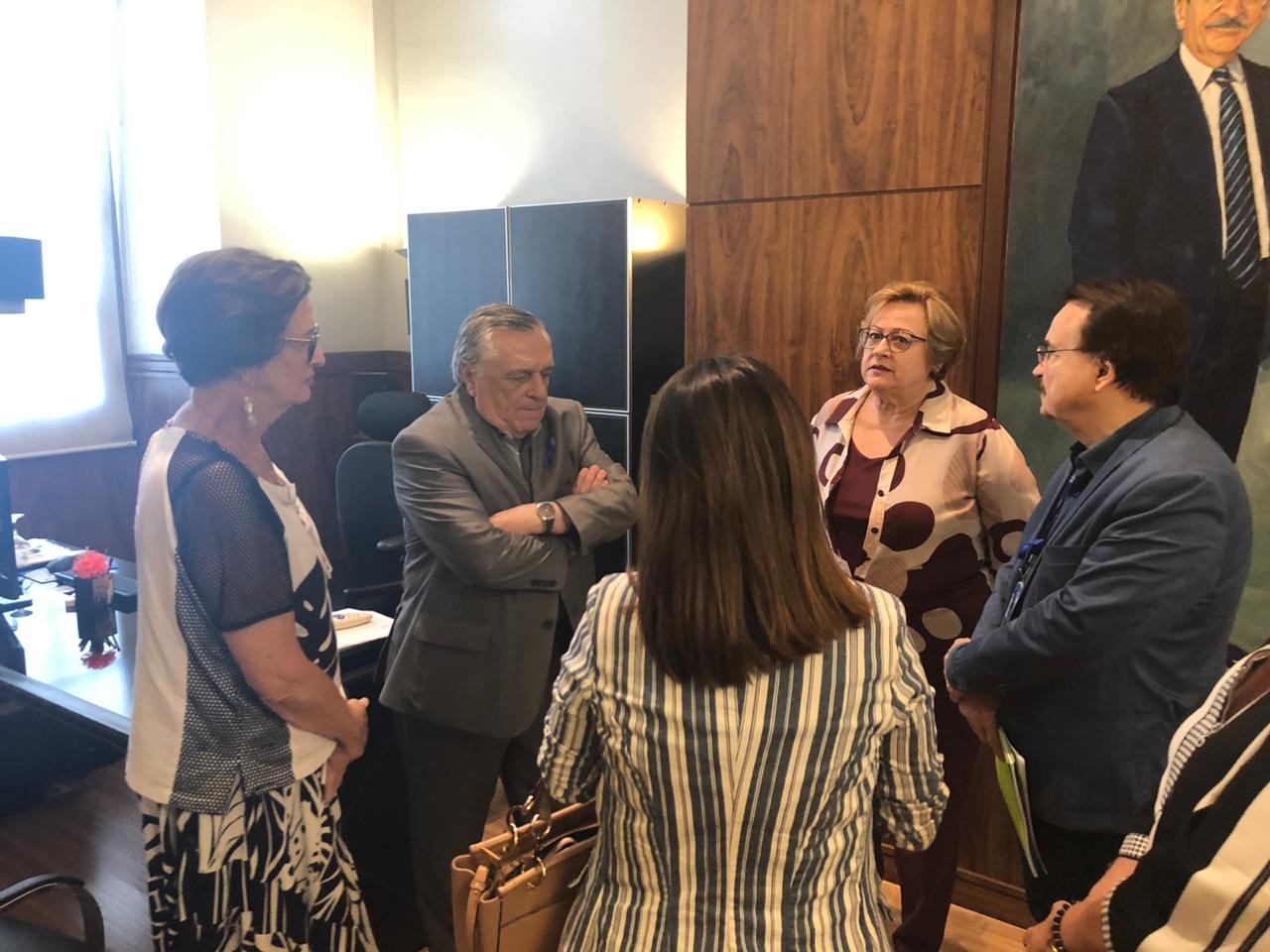 A presidente do IMIP, Silvia Rissin juntamente com a presidente da Fundação Alice Figueira de Apoio ao IMIP, Elizabeth Veiga, receberam na manhã desta terça-feira (05), o diretor-presidente da Arpe, Severino Otávio e sua esposa Maurinete Carvalho acompanhados pelo diretor de Regulação Econômico-financeira, Fred Maranhão e a ouvidora Paula Lima, para a entrega dos lenços arrecadados na campanha do Outubro Rosa, realizada pela Arpe. Na ocasião, Silvia falou sobre a história e a importância do Hospital para a população. “O IMIP foi o primeiro hospital do Brasil a receber o título de "Hospital Amigo da Criança", concedido pela Organização Mundial de Saúde/UNICEF/Ministério da Saúde”, destacou Silvia. Logo após a entrega dos lenços, os diretores e a ouvidora da Arpe, acompanhados pela assessora isabel Veiga, fizeram uma visita à instituição e ficaram encantados com o trabalho desenvolvido no IMIP. No mês corrente, a Arpe iniciou uma nova campanha com arrecadações para o Novembro Azul.