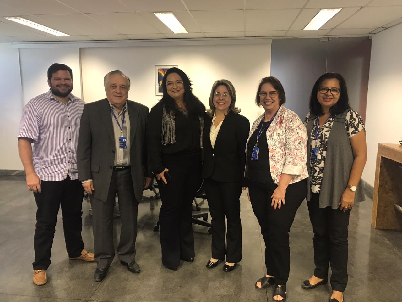 Os representantes da ARSEP, Marilda Fernande, coordenadora de Tarifas, Marco Chacon, coordenador de Saneamento, Janine Silveira, representante do gabinete da presidência. Pela Arpe participaram a coordenadora de Tarifas e Estudos Econômicos, Ângela Freitas e a coordenadora de Saneamento e Resíduos Sólidos, Ester Rodrigues.