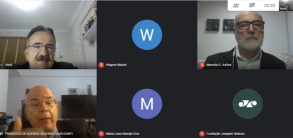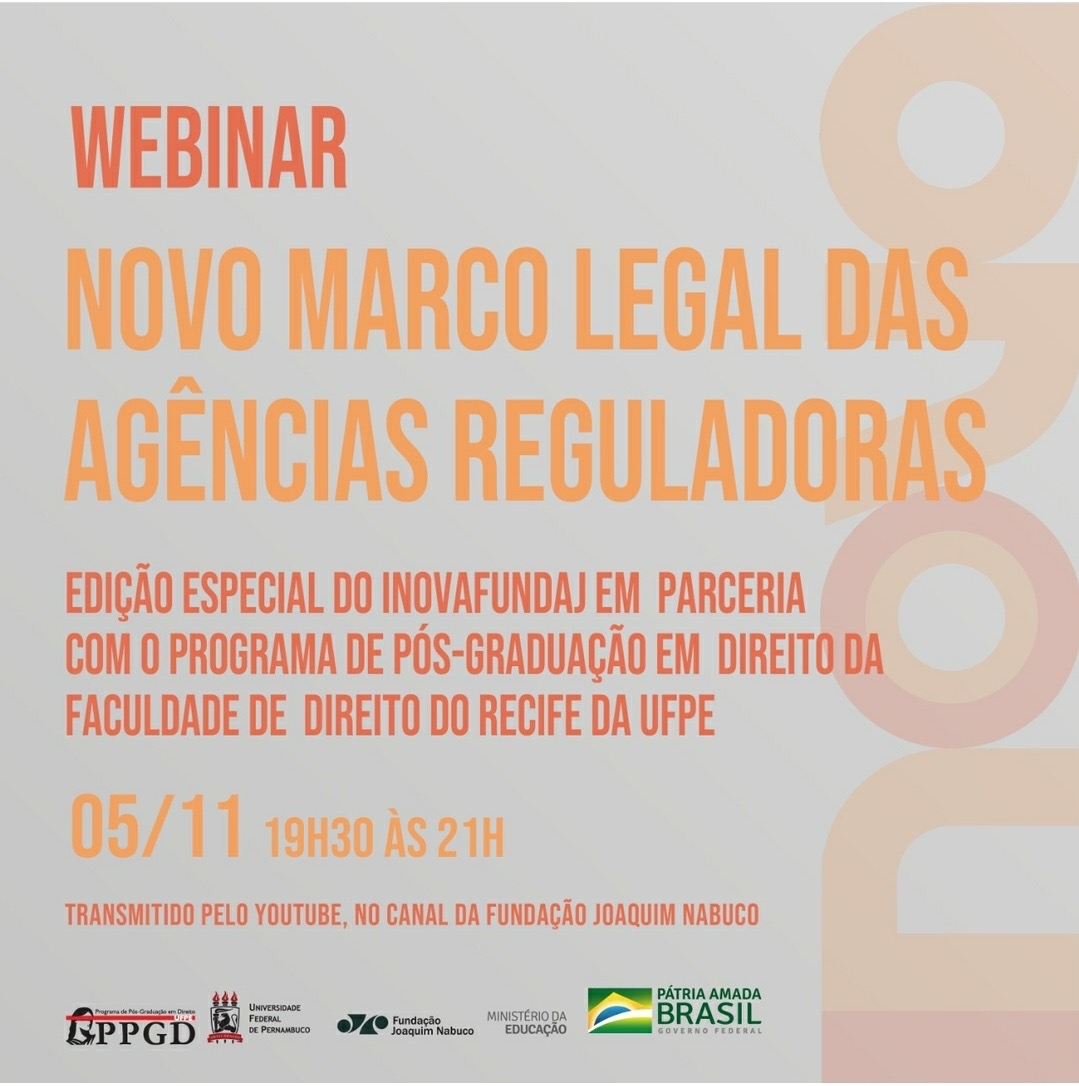 Na quinta-feira (05/11) foi realizado sob a condução de Wagner Maciel, diretor da DIFOR da Fundação Joaquim Nabuco (FUNDAJ), com o apoio logístico e operacional de Maria Luíza Cruz, coordenadora de Estudos de Inovação - CGCEI/DIFOR, com os debatedores, Dr. Francisco Queiroz, professor da Faculdade de Direito do Recife da Universidade Federal de Pernambuco (FDR/UFPE), e Fred Maranhão, diretor da Associação Brasileira de Agências de Regulação (ABAR) e da Agência de Regulação de Pernambuco (Arpe), e, também, com o moderador, Marcelo Asfora pesquisador da (FUNDAJ).