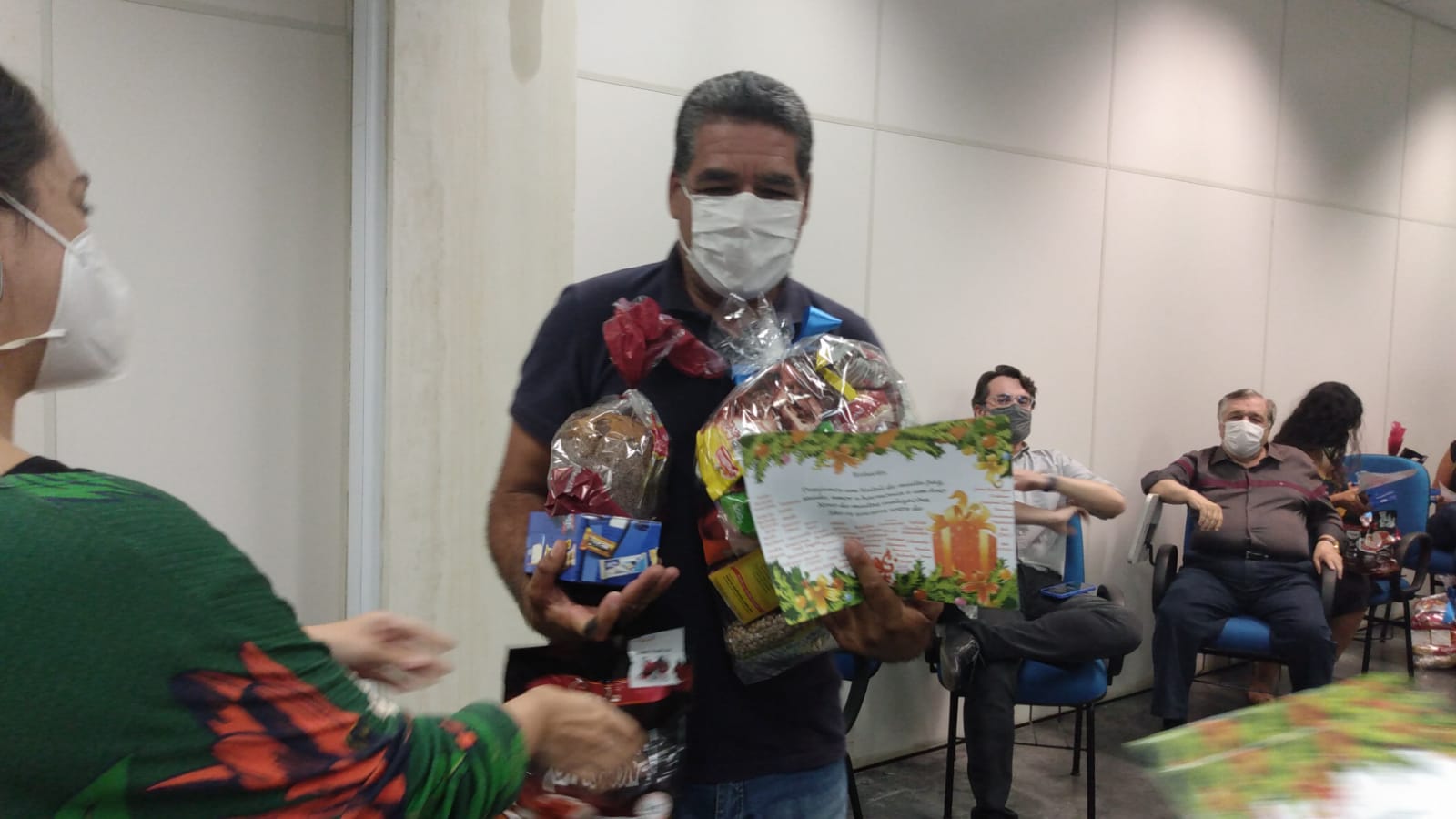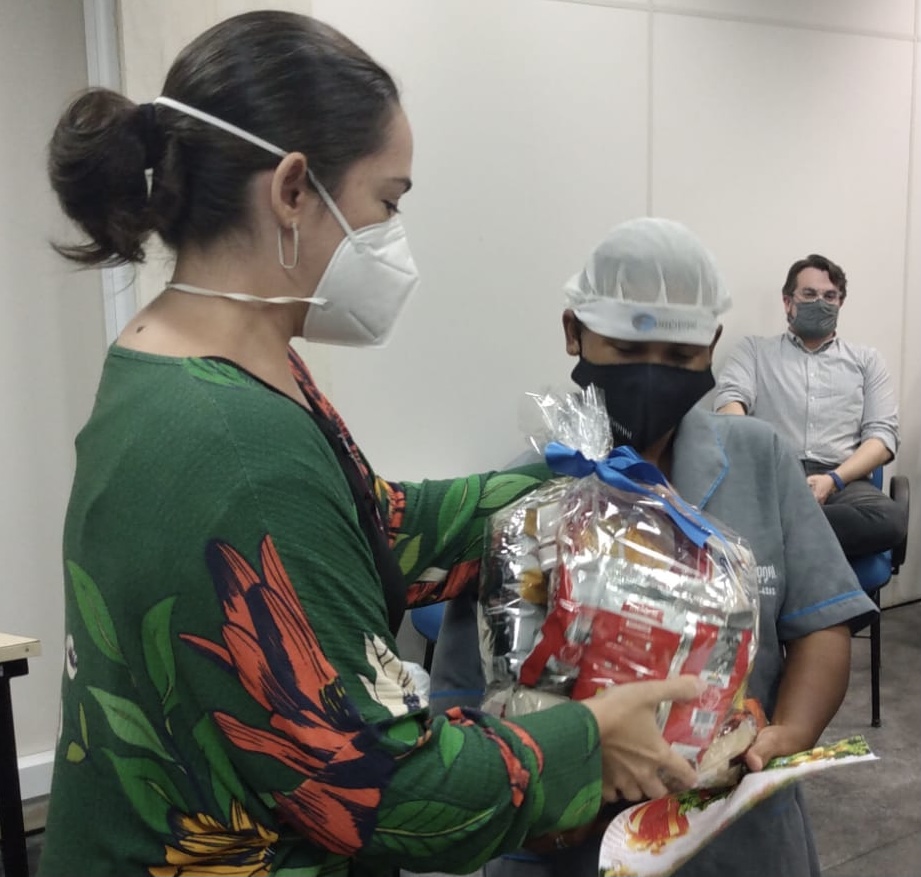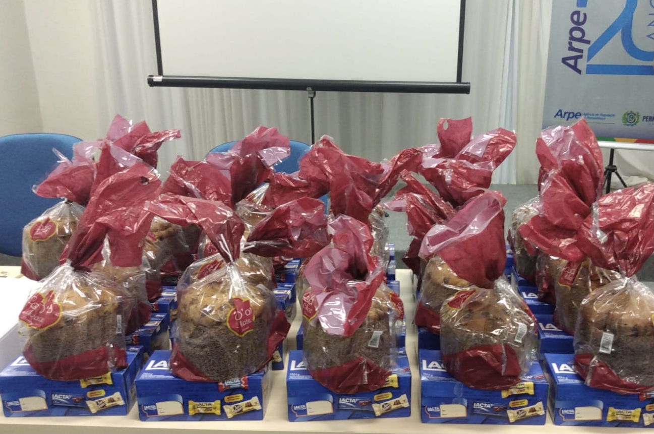 Na manhã de quinta-feira (16/12), no auditório da Agência de Regulação de Pernambuco – Arpe, foi entregue aos colaboradores terceirizados cestas natalinas, além da realização de sorteios de brindes, como forma de agradecimento aos serviços prestados durante o ano 2021. O encontro foi coordenado pela equipe da GAP (Gerência Administrativa e de Planejamento), com a supervisão de Roberta Araújo, Helena Ramos da Cane (Coordenadoria de Atividades Não Exclusivas do Estado), Cirneide Maria da CAF (Coordenadoria Administrativa Financeira) e Izidora Campos do RH (Recursos Humanos). Estiveram presente o diretor-presidente, Severino Otávio, o diretor de Regulação Administrativo-Financeira, Carlos Porto, além dos servidores da Arpe.