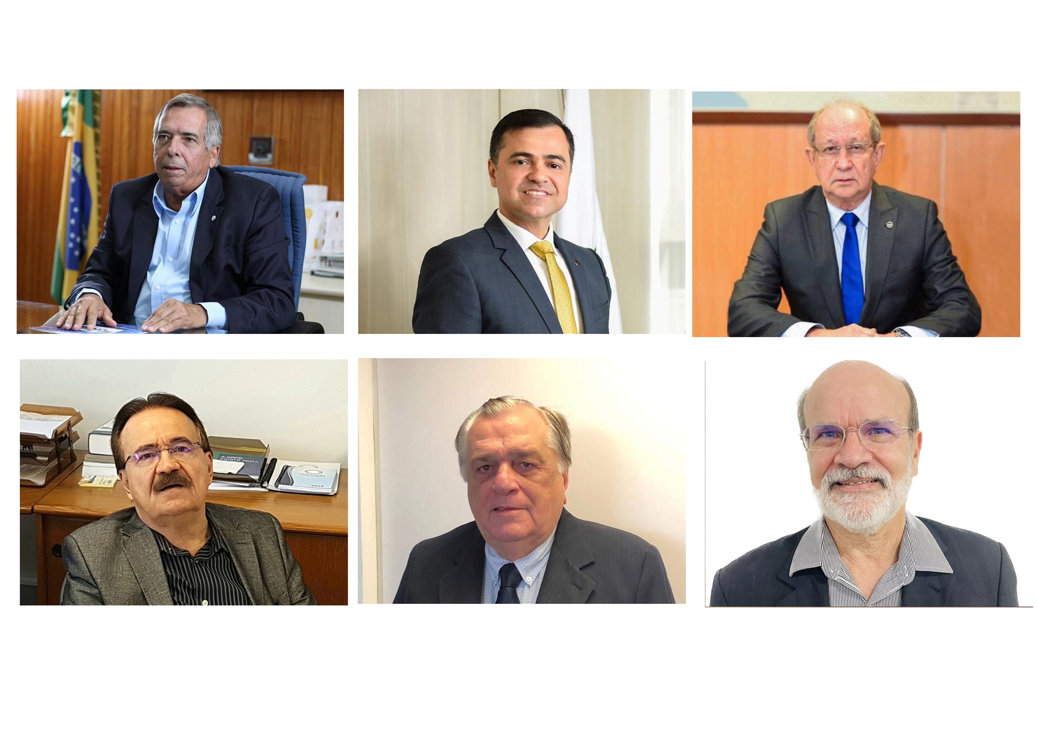 Tela com flash de imagens de participantes do evento, integrantes da área pública do Âmbito Nacional e do Âmbito Estadual. Diretor Geral da ANEEL, Sandoval Feitosa, Diretor-Presidente e Diretor de Engenharia da CHESF, respectivamente Fábio Lopes e Reive Barros, Diretor - Presidente e Diretor de Regulação Econômico-Financeira da ARPE, respectivamente Severino Otávio e Fred Maranhão e do gerente de Comercialização de Energia e Negócios da ADEPE, Manoel Malta.