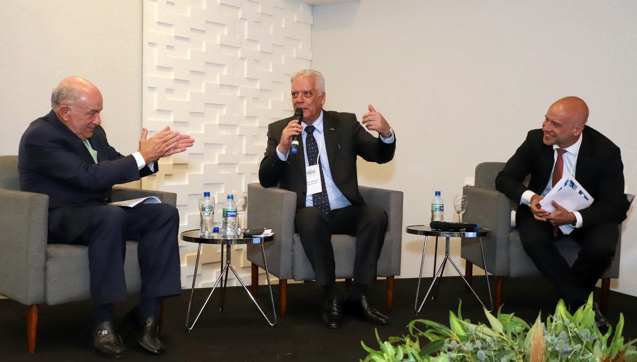 O presidente da ABAR, Vinícius Benevides, fez a abertura do Encontro na companhia dos palestrantes convidados, Aroldo Cedraz (TCU) e Marcelo Guaranys (Ministério da Economia)